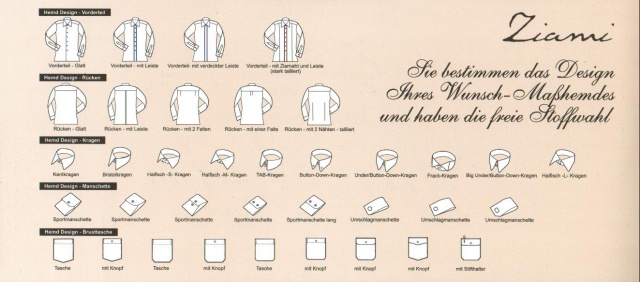 Herrenkleidung Masshemden Massanzüge Krawatten Manschettenknöpfe Boxershorts Damenkleidung Allgemeines Die Firma Jobs Impressum |